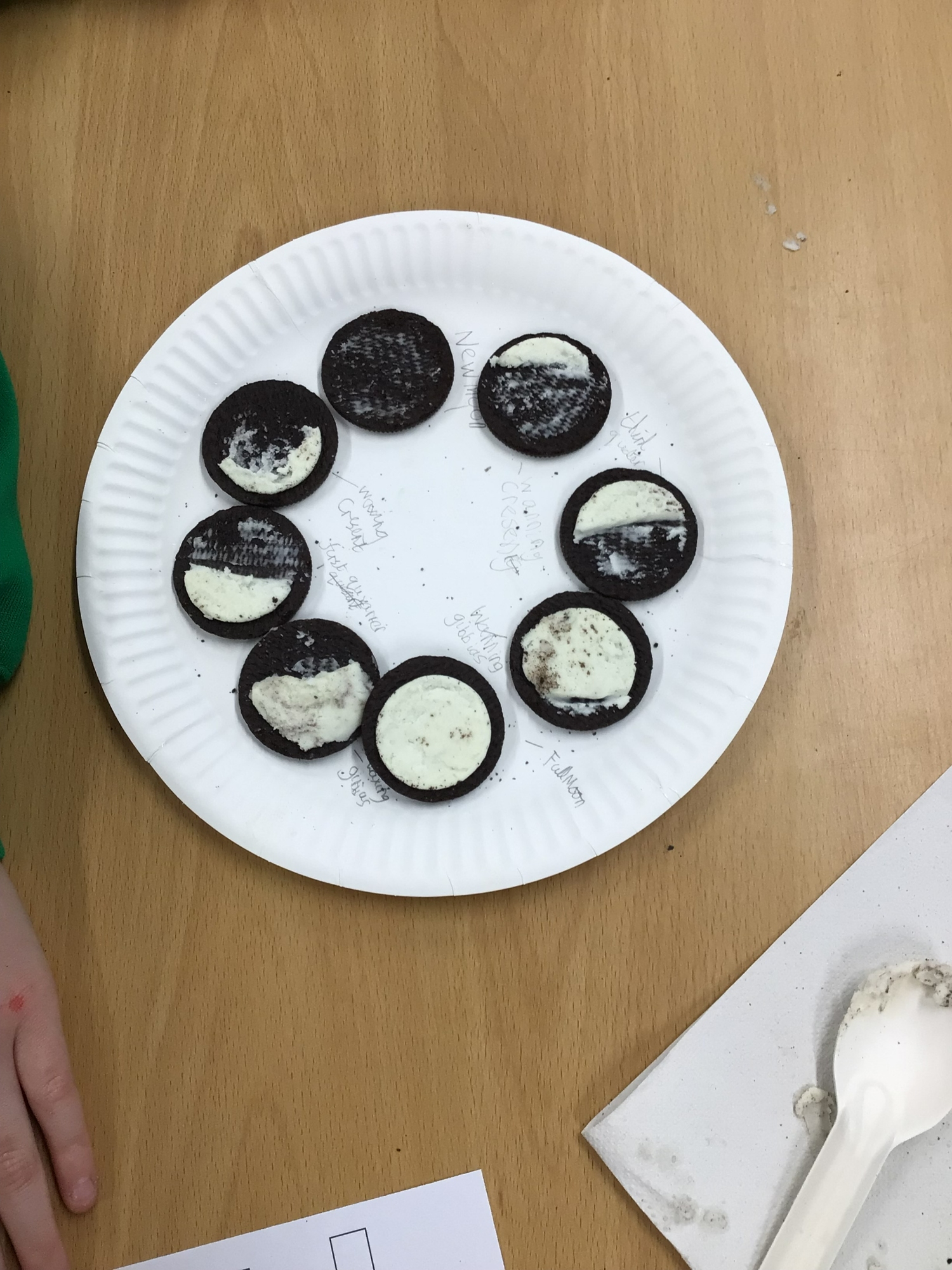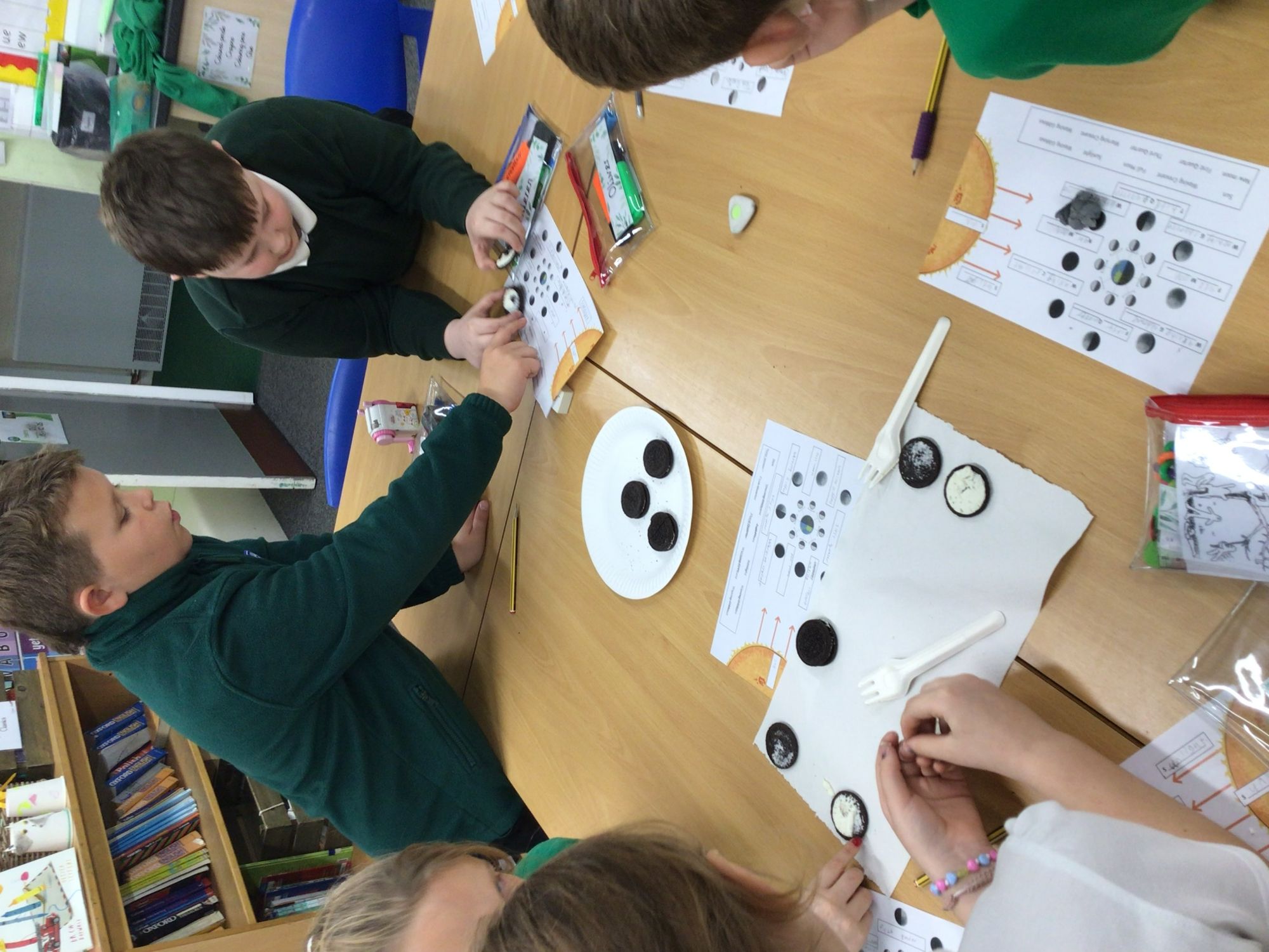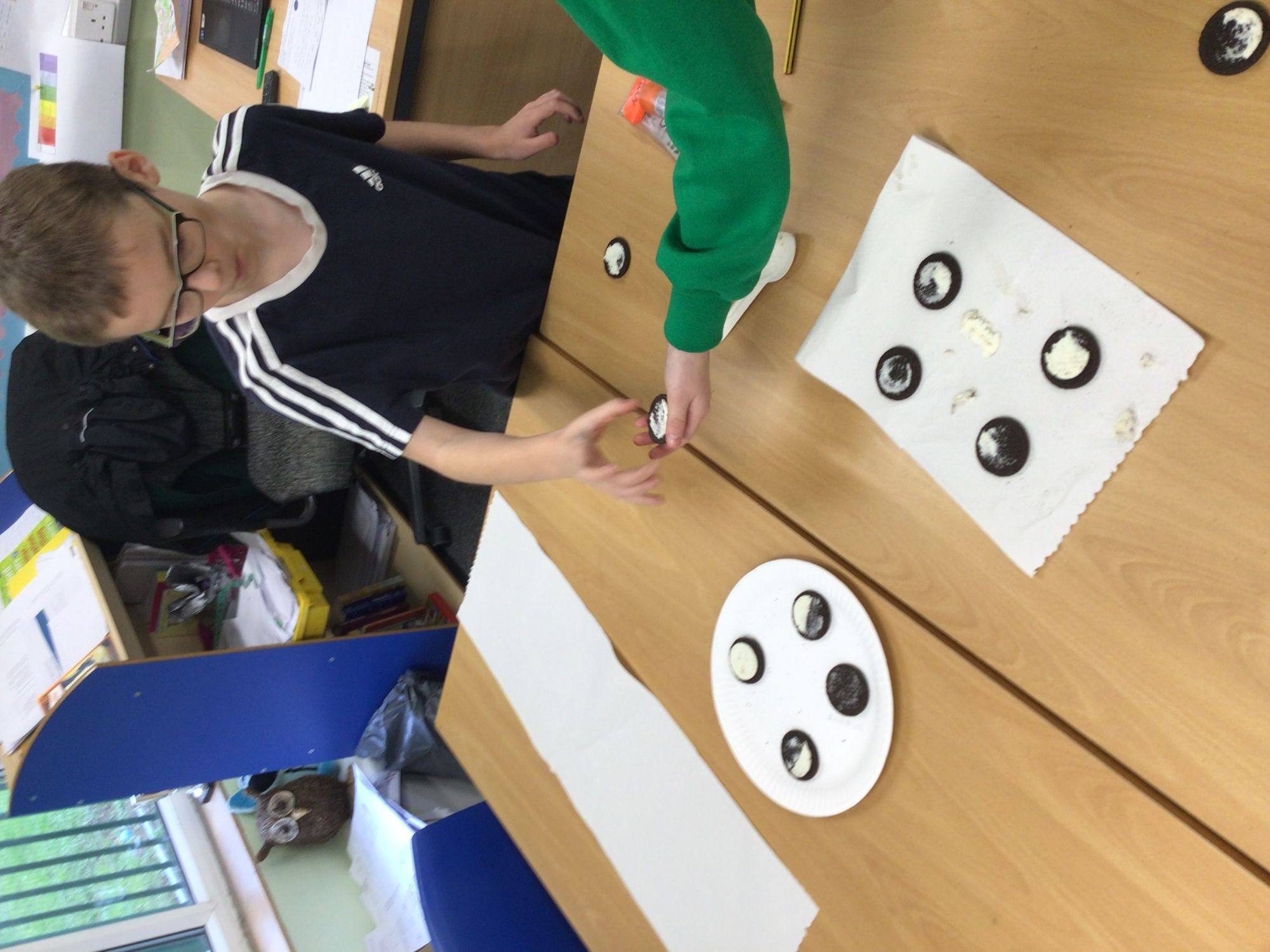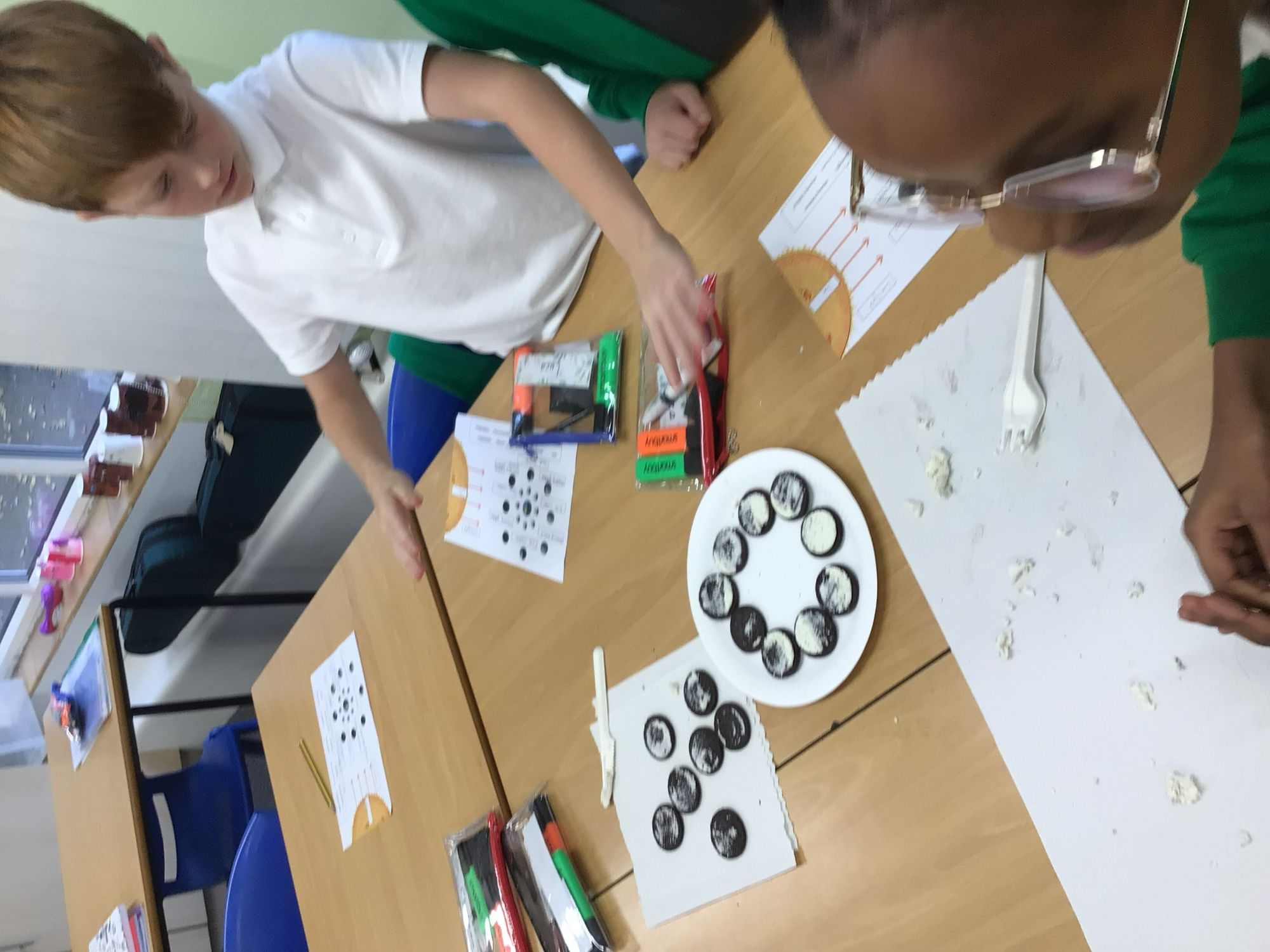The children had lots of fun in their science lesson exploring how and why the Moon’s shape appears to change. They identified and named the different phases of the Moon by carrying out an Oreo cookie experiment, which helped them understand that the Moon reflects sunlight as it orbits the Earth. Through this practical activity, the children were also able to describe that the Moon orbits the Earth approximately once every month.