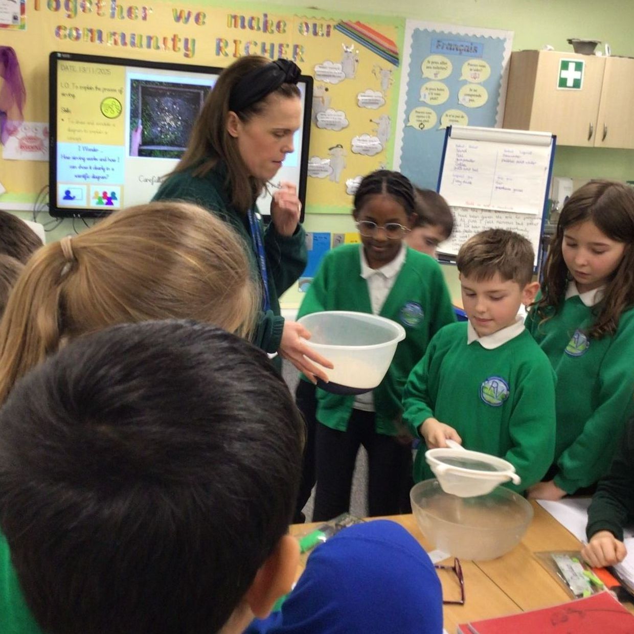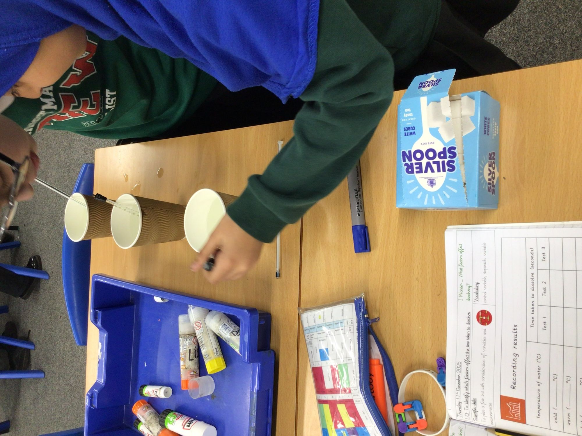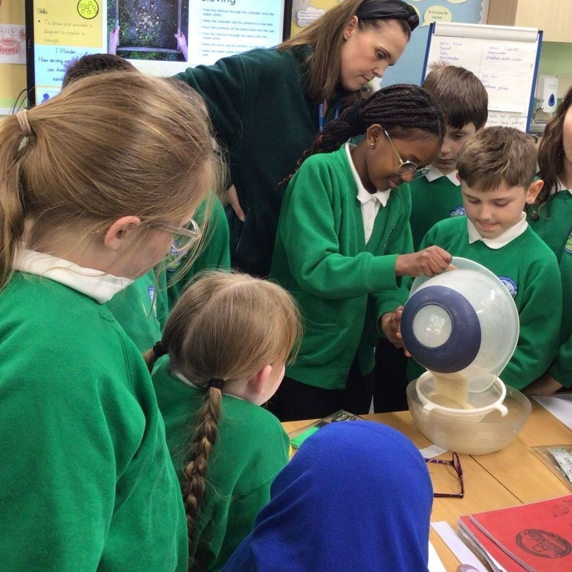 This term in science, the children have been exploring mixtures and a range of methods used to separate them. They have investigated techniques such as sieving and filtering, carrying out hands-on experiments to understand how these processes work and when they are most effective. Through practical activities, the children observed how different materials can be separated based on their properties. In addition, they explored what solutions are and how to identify them, learning the difference between soluble and insoluble substances. The children also investigated the factors that affect the time it takes for sugar to dissolve, including temperature and stirring, allowing them to develop their scientific enquiry skills by making predictions, observing changes, and drawing conclusions from their results.