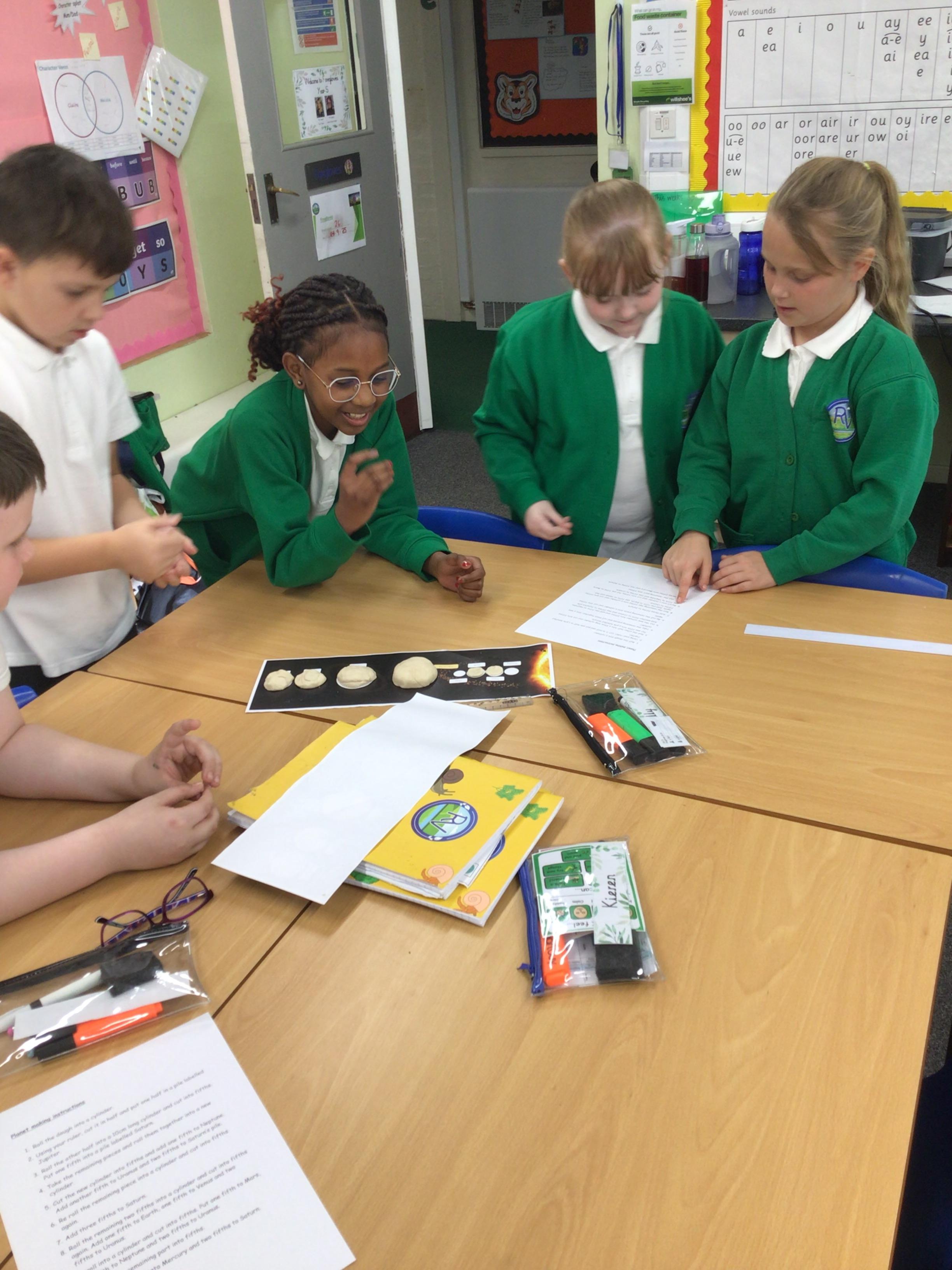 The children were exploring and describing the movement of the Earth and other planets relative to the sun in the solar system. They identified the distance of the planets from the sun and concluded that the further a planet is from the sun, the longer its orbit and therefore its year.