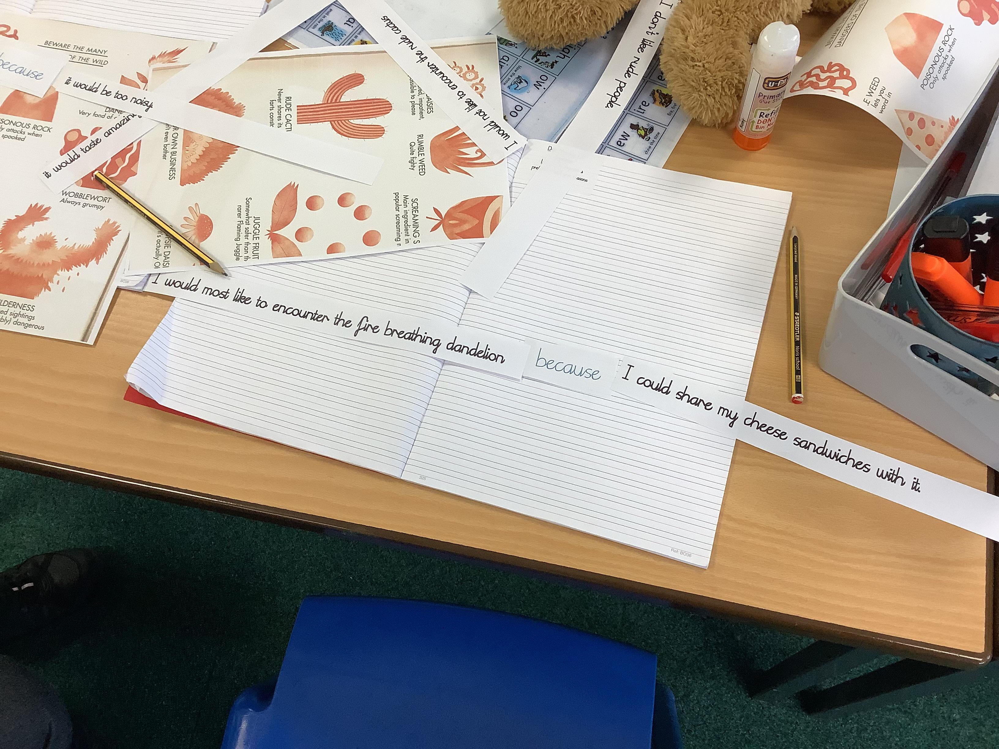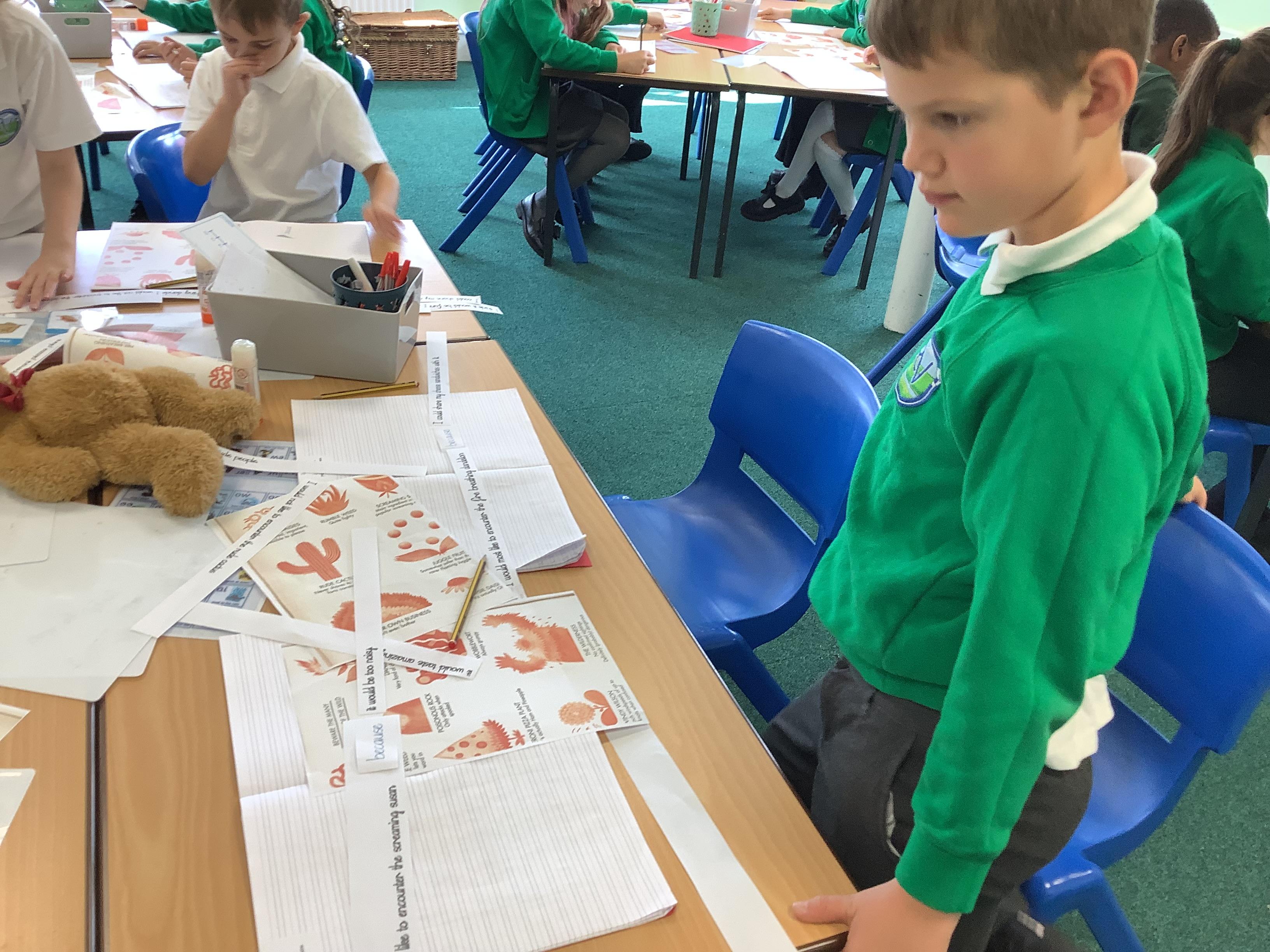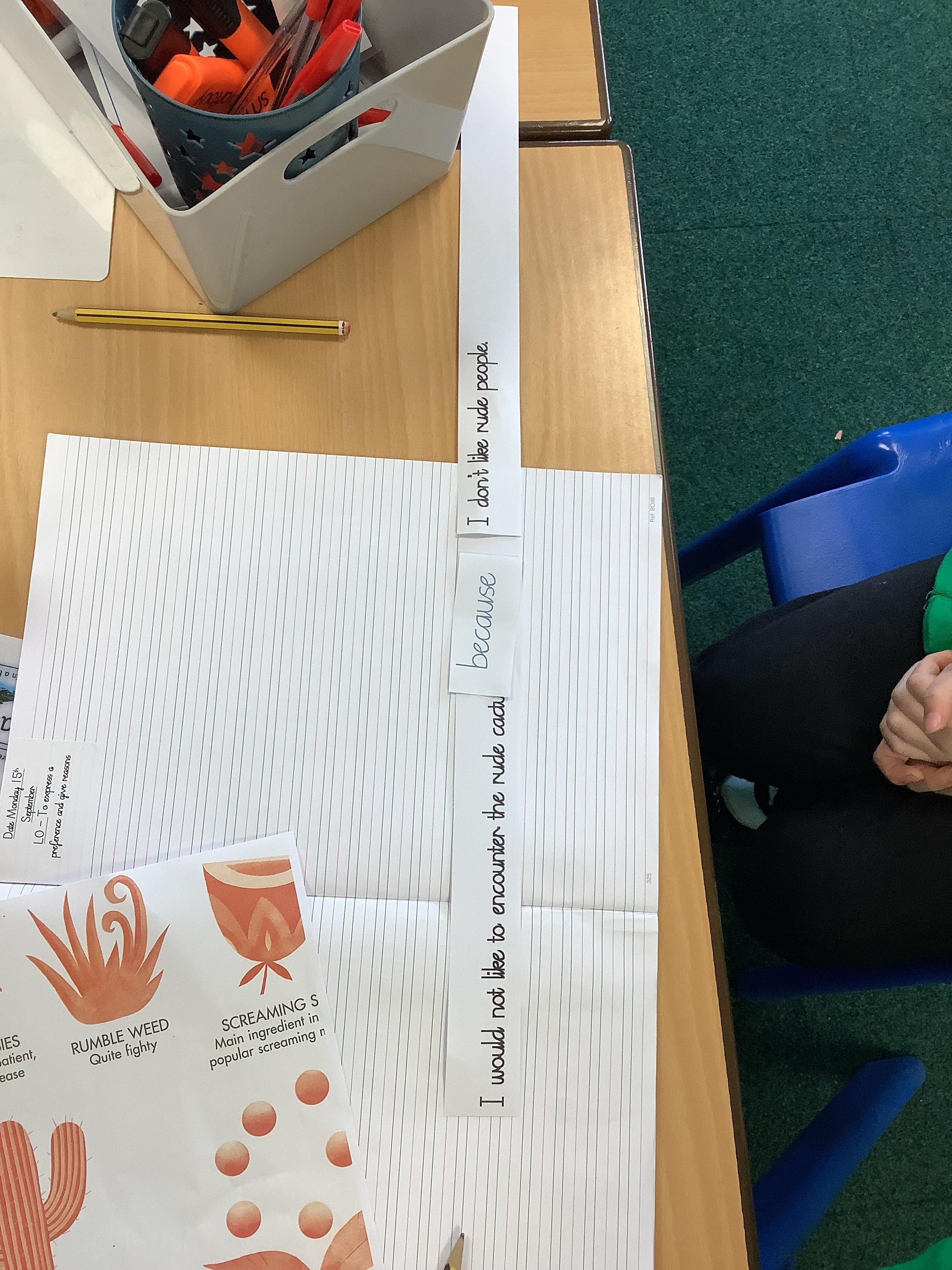 Today we were exploring the conjunction 'because'. We created a variety of main and subordinate clauses and joined them with our conjunction