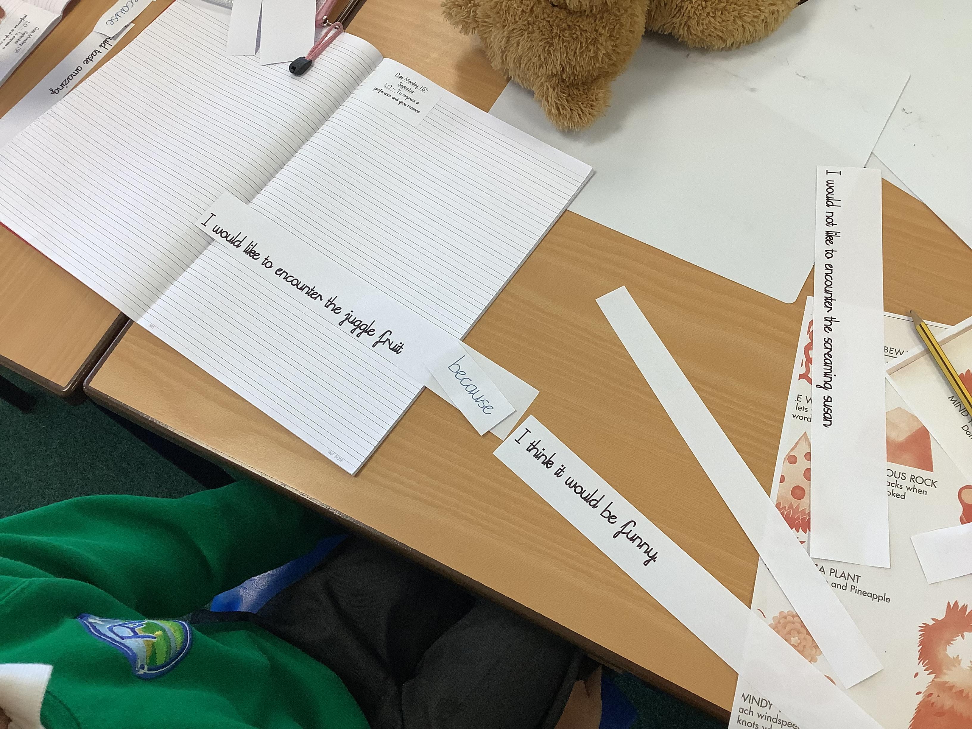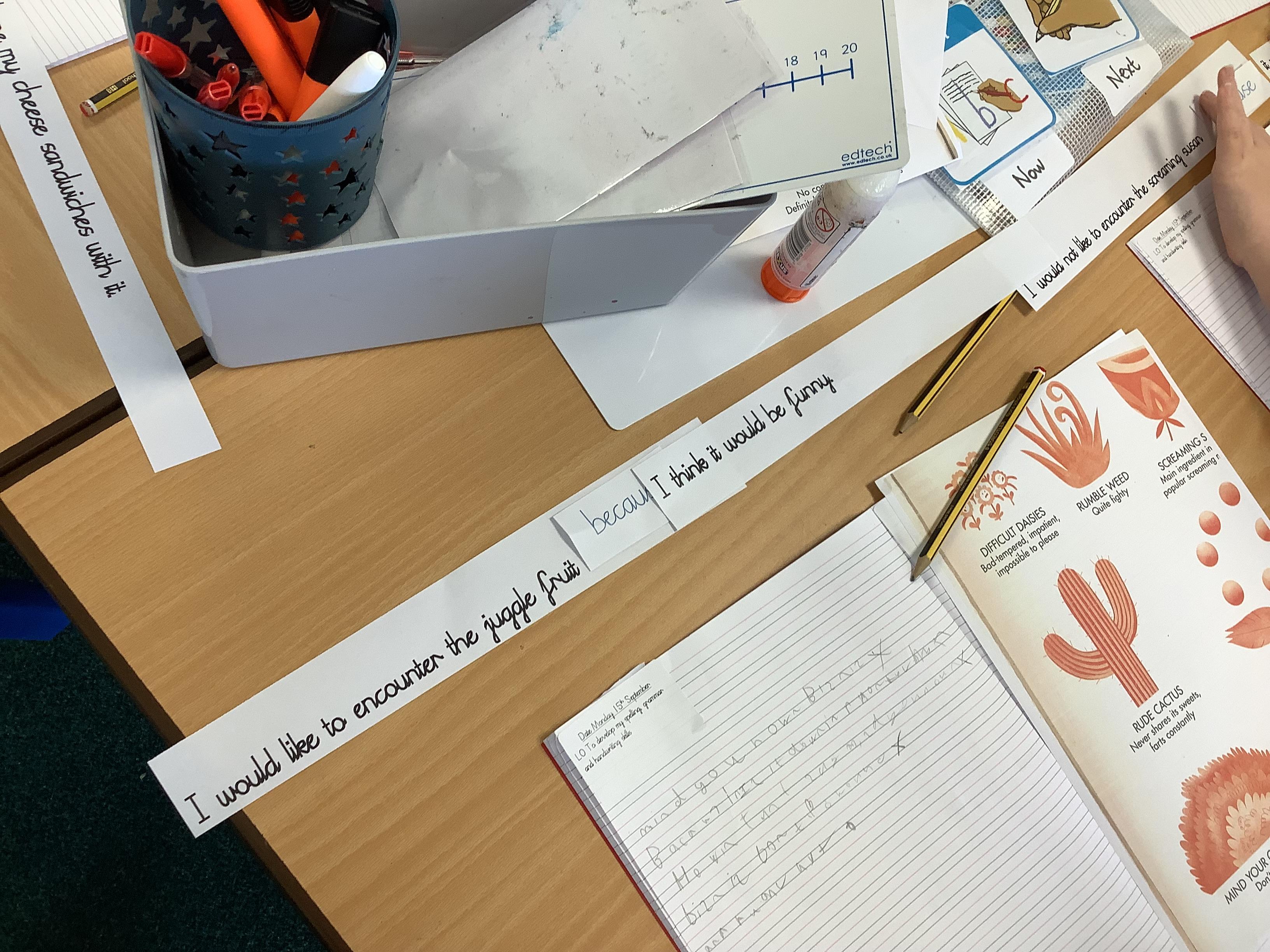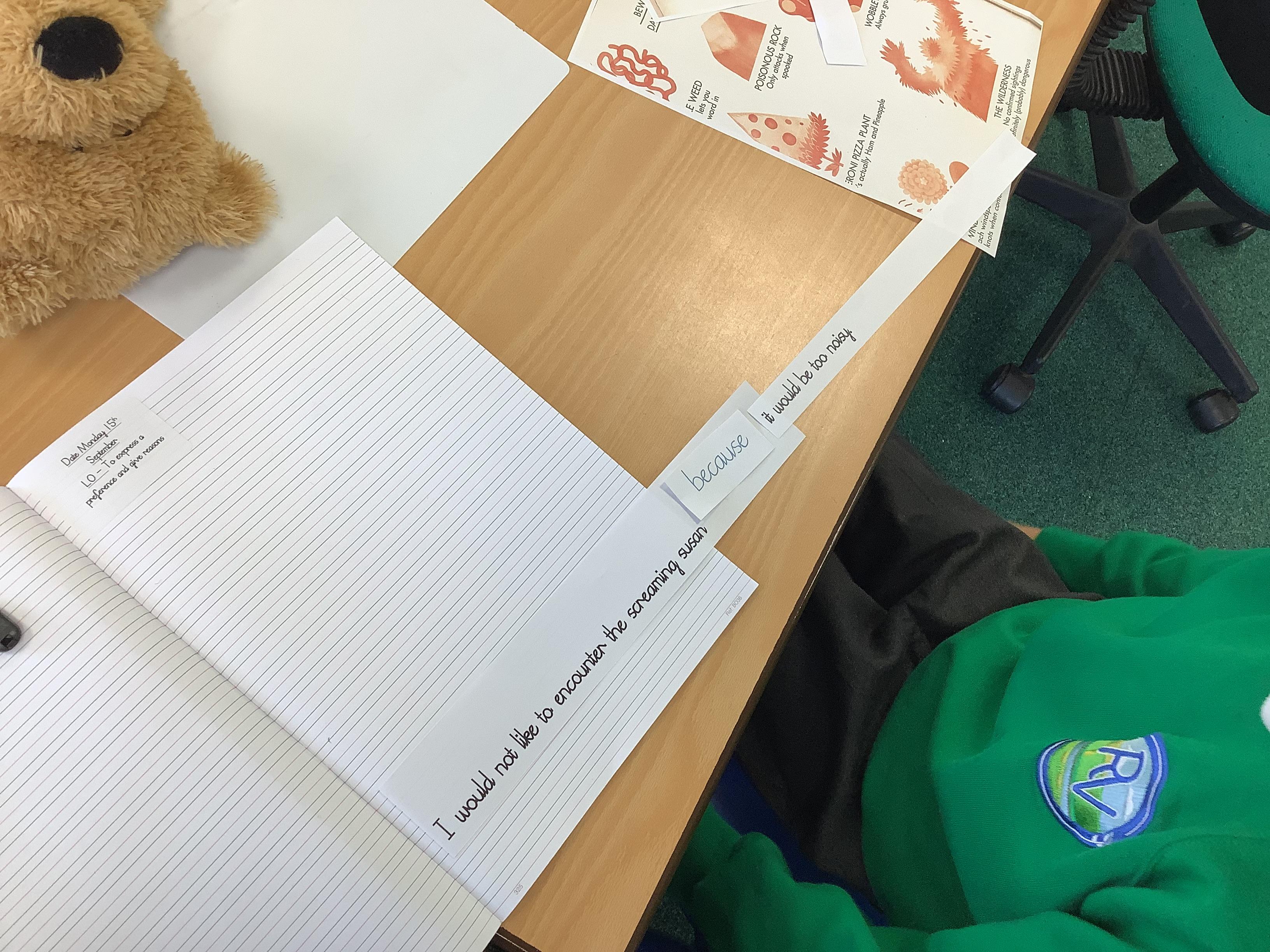 Today we were exploring the conjunction 'because'. We created a variety of main and subordinate clauses and joined them with our conjunction