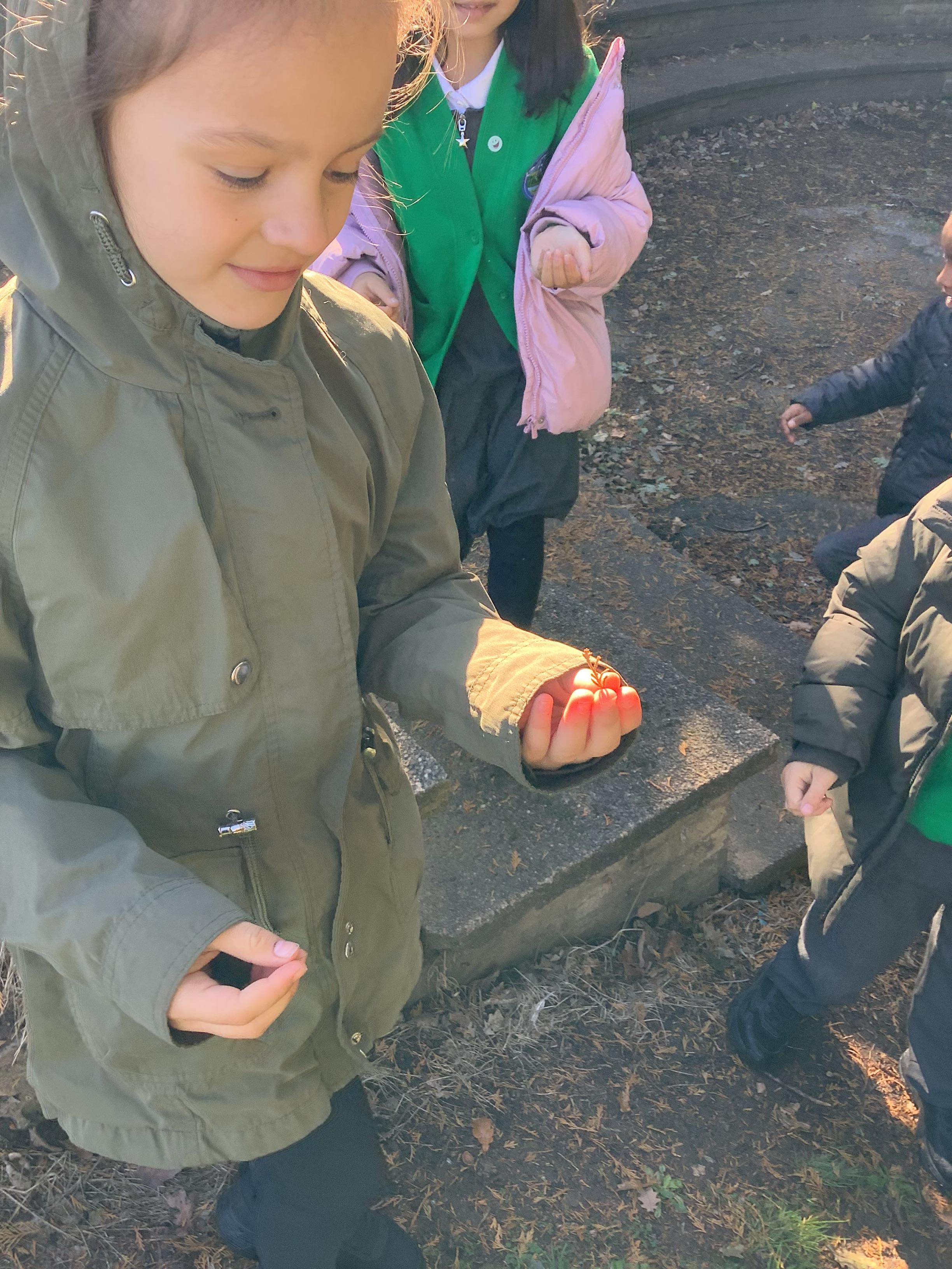 Today we went on a nature walk to explore the outdoor area. We thought about what we could see, hear and smell. We used this to create a noun phrase bank to use for the rest of the week.